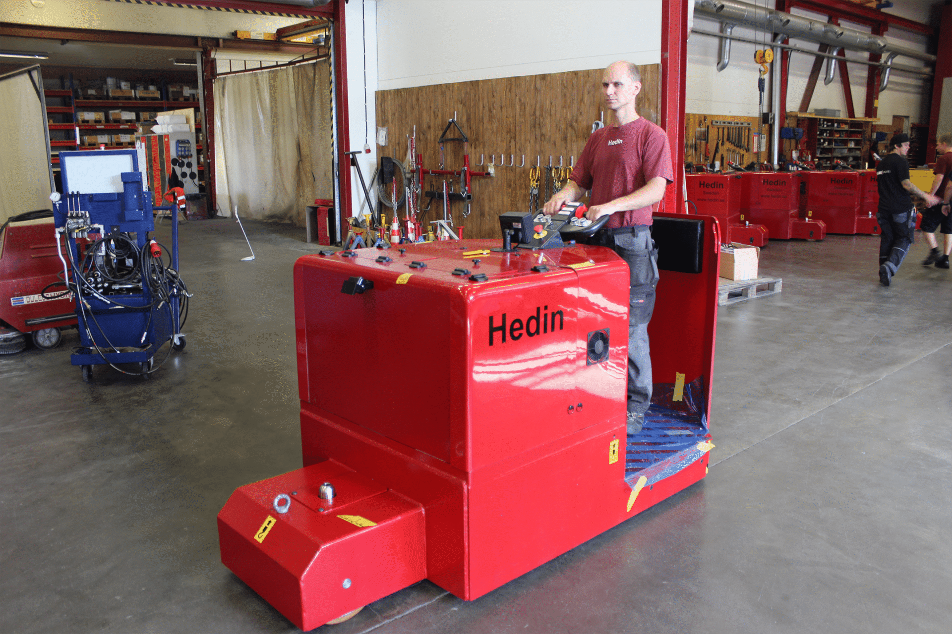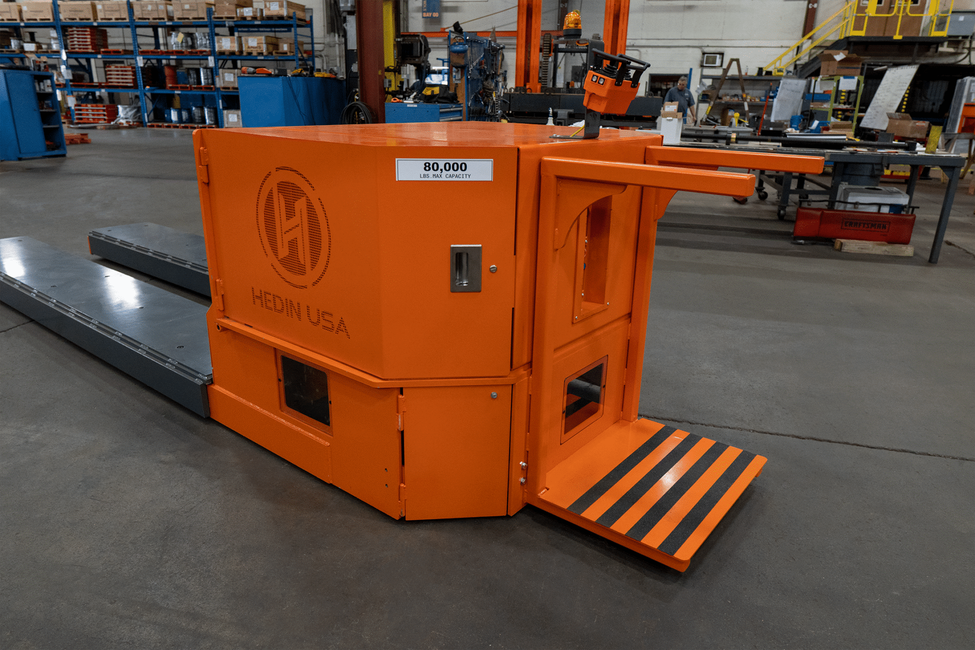 No load is too heavy; our battery-powered Flatbed Transporter handles various sizes and capacities, with custom capacities of over a million pounds. The load can be placed directly on the transporter or a pallet.